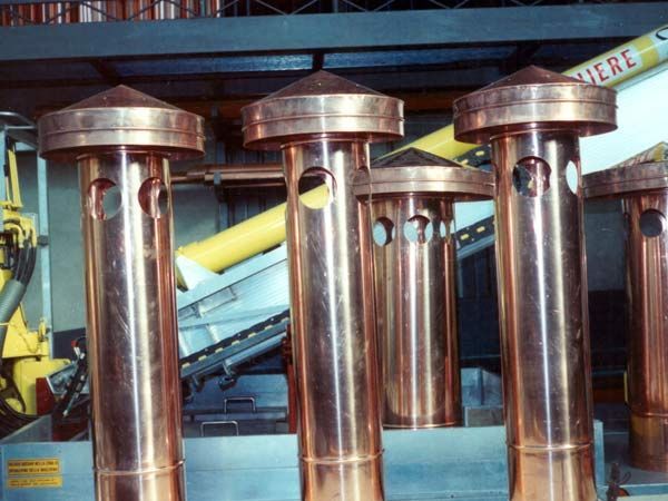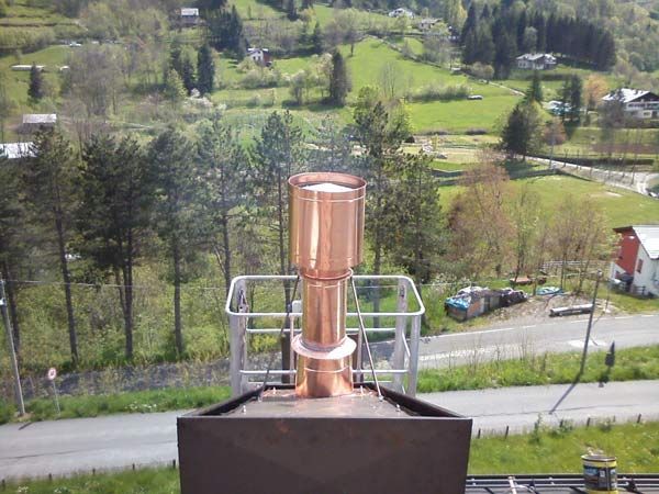 Siamo in grado di realizzare camini di qualsiasi tipo e forma (rettangolare, quadrato, rotondo o di qualsiasi altra richiesta del cliente), servendoci di un tubo aggraffato e completando il tutto con un cappello prodotto in dimensioni proporzionate a quelle del camino stesso.