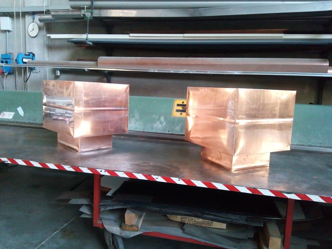 Oltre al rame, ci serviamo di altri materiali, quali l’acciaio inox, l’alluminio preverniciato o naturale, la lamiera preverniciata e il laminato Lamierpluss.