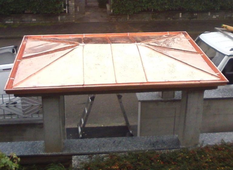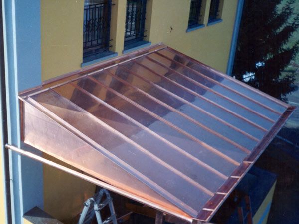 In particolare, le nostre tettoie per ingresso possono essere realizzate a doppia aggraffatura o con moduli grecati, utilizzando rame, acciaio inox, alluminio, lamiera preverniciata o laminato Lamierpluss.